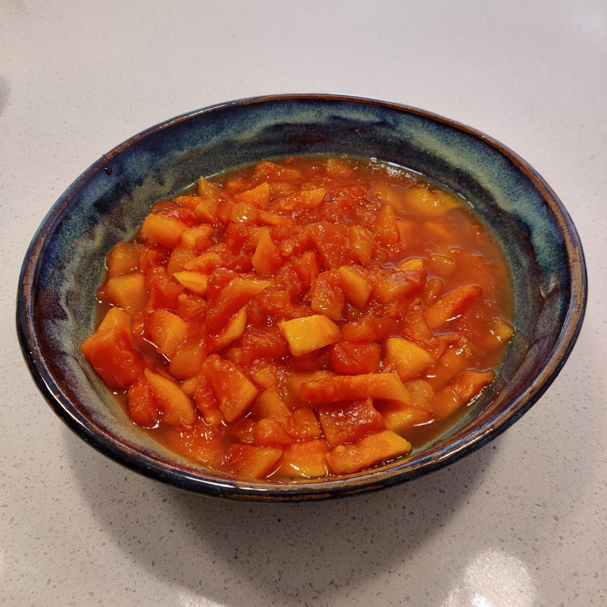 - Cook on medium high heat until the papaya releases its juices and the liquid comes to a simmer.