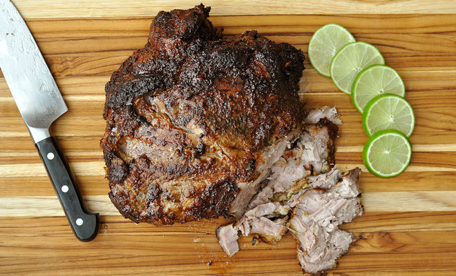 - Remove from the oven and squeeze 1 lime over the shoulder. Let cool for 30 minutes before serving.